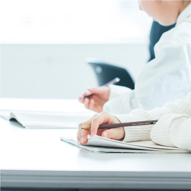 英語をマスターするためには文法の体系的理解が必要であり、一斉指導でクラス全員の英語力を引き上げます。数学はポイントを説明した上で、一人一人のプリント進行を細やかにチェックします。